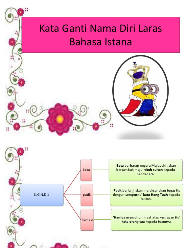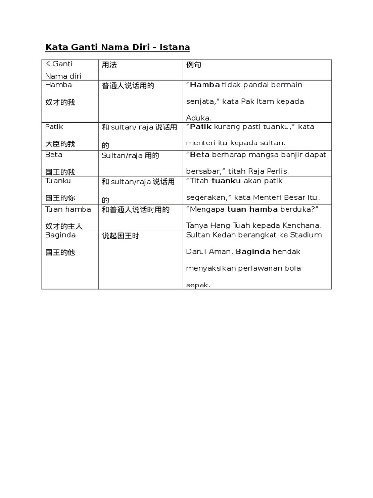 Kata Ganti Nama Diri Bahasa Istana / Kosa kata di dalam bahasa inggris ada banyak sekali jumlahnya.. Lebih banyak pelajaran bahasa arab. Savesave kata ganti nama diri laras bahasa istana.docx for later. Kata seru / ayat seru. Kata ganti nama diri dan laras bahasa istana 2 0. Untuk kata ganti nama diri bagi kaum kerabat diraja ialah baginda.